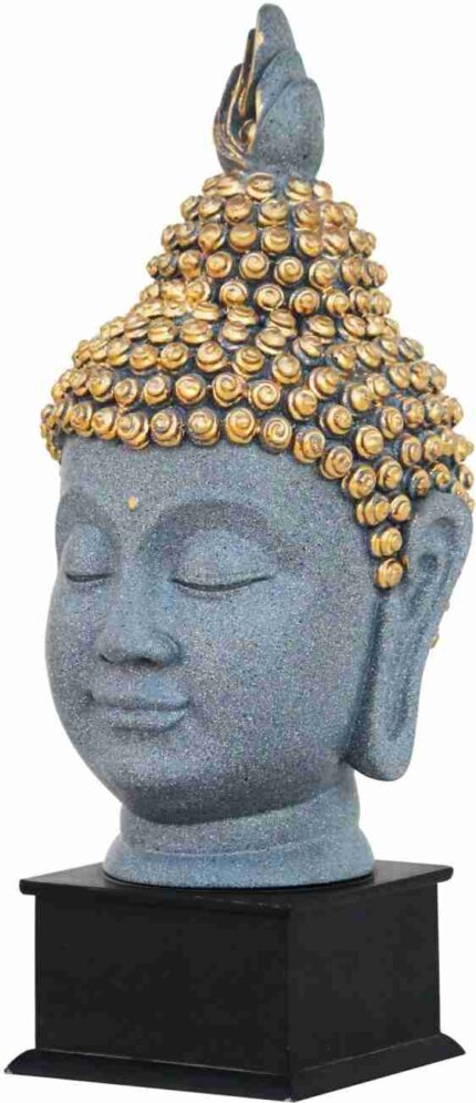 Elegant Design: Antique Black and Gold Buddha face with a detailed crown, adding a regal touch to your decor. Premium Quality: Crafted with intricate detailing and high-quality materials for a timeless, durable showpiece. Versatile Decor: Ideal for meditation rooms, living rooms, offices, or as a thoughtful gift for loved ones. Sturdy Wooden Base: Ensures stability and complements the artistic beauty of the Buddha face sculpture. Perfect Size: Dimensions of 15 x 5 x 5 inches make it a standout piece without overpowering your space. Symbol of Peace: Brings a serene, calming influence to your home or workspace with its peaceful, Buddha-inspired design