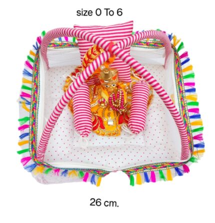 Laddu Gopal Bed, Jhula, Singhasan, Thakur ji Bed (White – Pink, (0 to (6 26CM)))