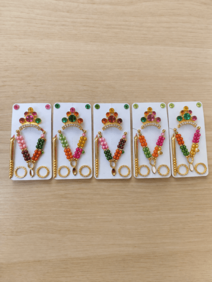 - EXQUISITE LADDU GOPAL JEWELLERY SET: Beautifully handcrafted multicolor Laddu Gopal Mala Set with matching Kangan, designed to enhance the divine appearance of your Krishna idol.