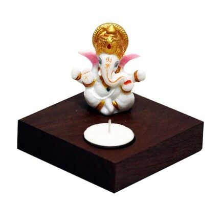 Handcrafted Design: Intricately carved Ganesha design, adding a touch of spirituality and elegance to your home décor. Perfect Size: Compact 4x4 inch size ideal for tables, shelves, or altar spaces. Warm Ambiance: Holds a tea light candle, creating a soothing and peaceful glow in any room. Durable & High-Quality Wood: Crafted from premium wood for long-lasting beauty and functionality. Versatile Home Décor: A beautiful accent piece for living rooms, bedrooms, or special occasions. Ideal Gift: Makes a thoughtful and unique gift for festivals, housewarmings, or spiritual celebrations.