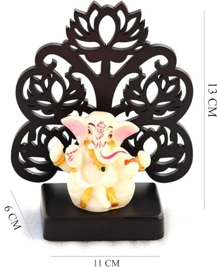Handcrafted Design: Expertly crafted with intricate detailing, showcasing traditional artistry and precision. Durable Material: Made from high-quality wood and polyresin for long-lasting durability and a premium finish. Multicolor Finish: Vibrant multicolor design enhances the visual appeal and adds a lively touch to your decor. Perfect Size: Standing at 13 cm, this compact showpiece fits perfectly on shelves, tables, or altars. Unique Decorative Element: Features a charming wooden tree base, creating a beautiful fusion of nature and spirituality. Ideal Gift: A thoughtful and auspicious gift for housewarming, festivals, or spiritual celebrations. Symbol of Prosperity: Lord Ganesha is revered for bringing wisdom, success, and good fortune to any space.