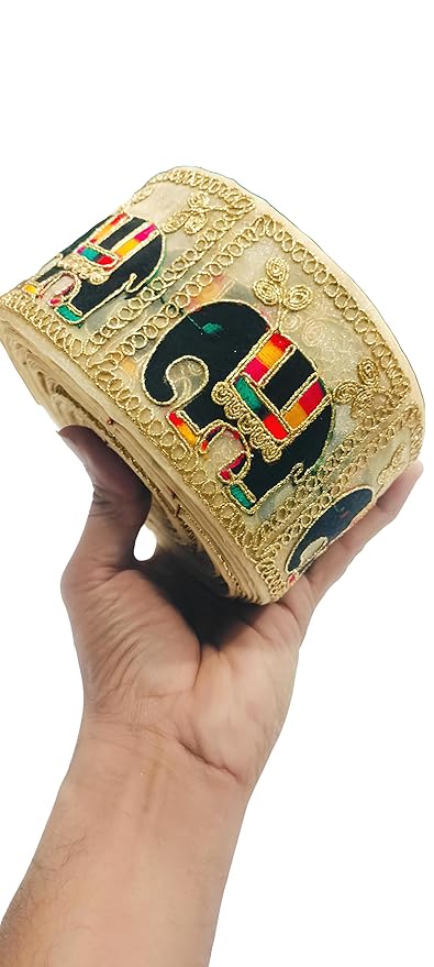 - Versatile Use in Fashion & Home Décor** – More than just a saree lace, this embroidered trim is perfect for *arts and crafts, school projects, wedding decorations, gift wrapping, stage decoration, and interior décor*. Its unique combination of **traditional elephant embroidery with Gota Patti** makes it a must-have for creative projects.