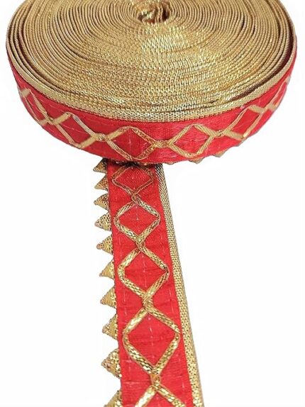 - Gota Patti Lace Borders are commonly used to adorn the edges of sarees, lehengas, dupattas, and other traditional Indian outfits. They add a touch of opulence and elegance to any garment, making it perfect for special occasions and weddings.