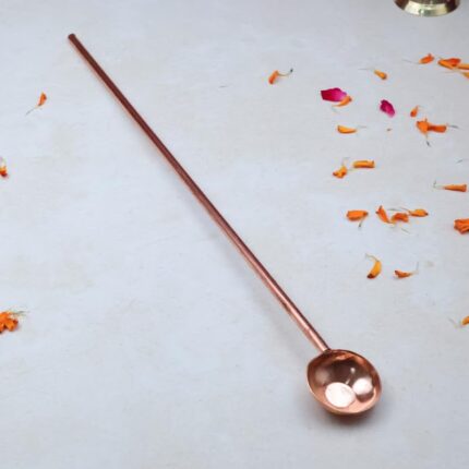 - Copper is strong and can withstand high temperatures, making the spoon ideal for fire rituals and regular pooja use.
