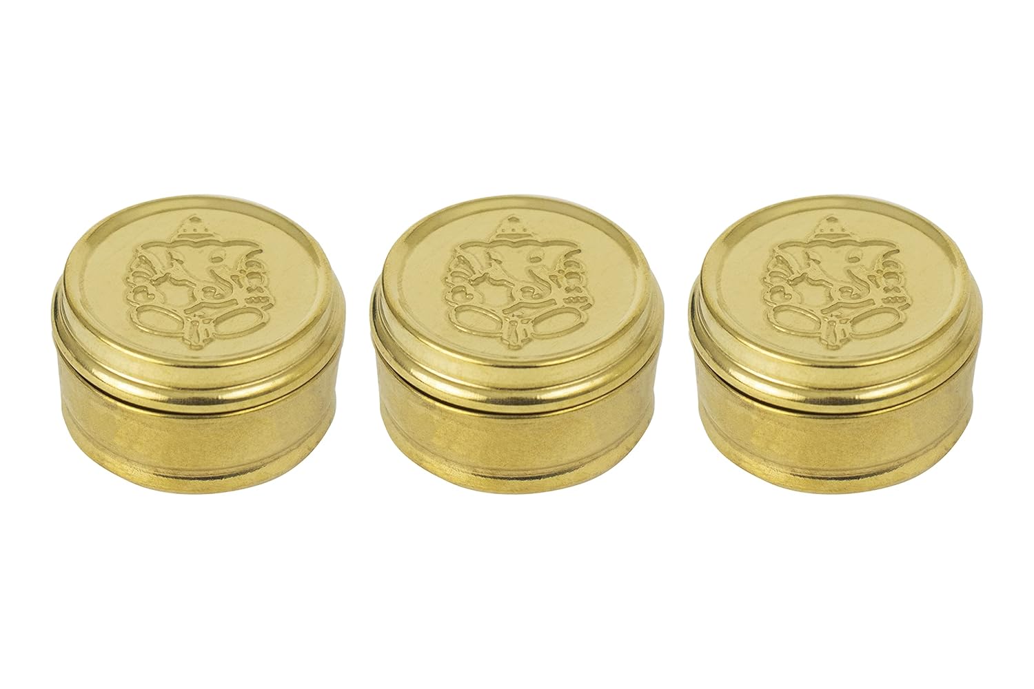 - Pure Brass Box contains Roli / Chawal / Chandan /Kumkum Puja Box / Dabbi