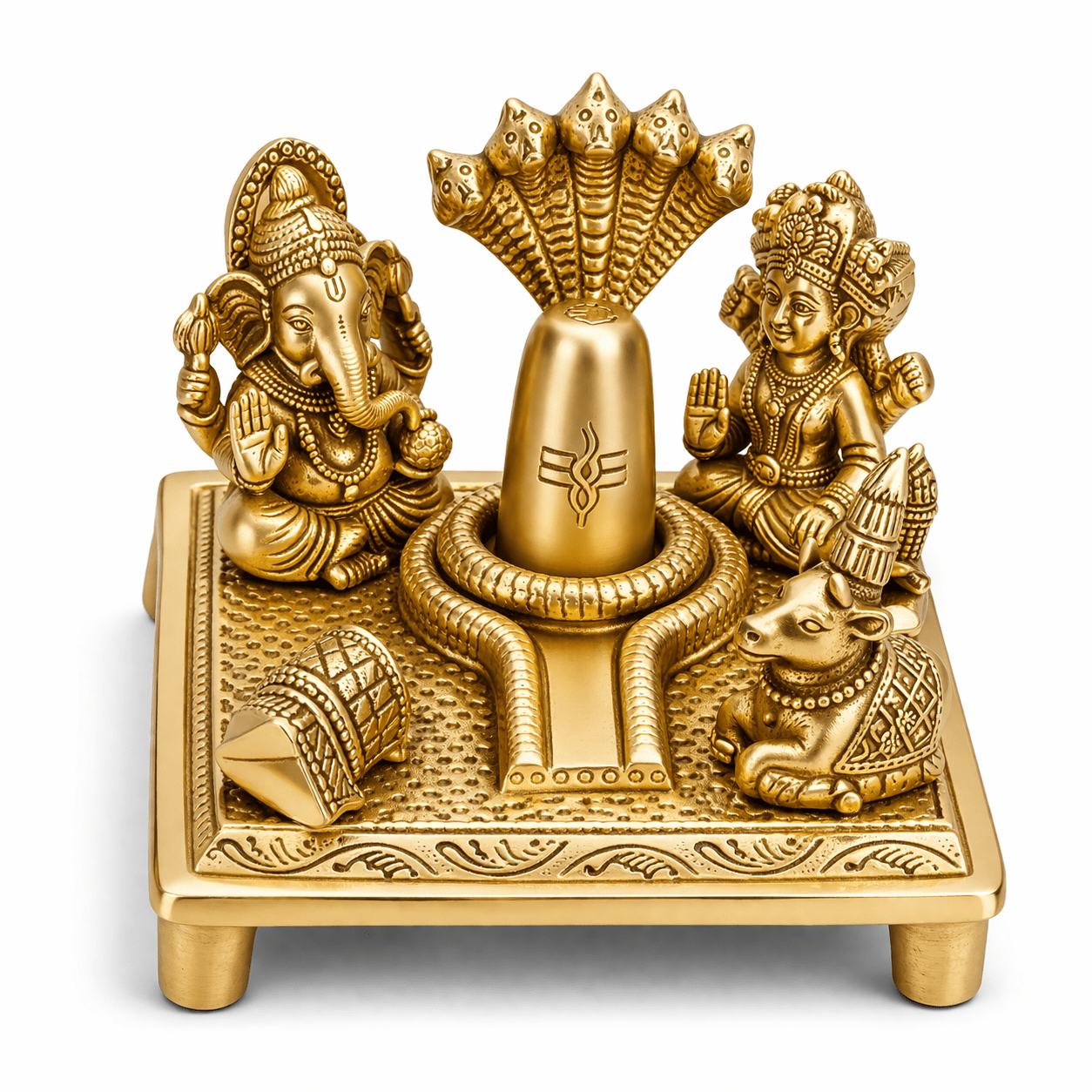 Product Dimensions 6L x 3W x 4H Centimeters Cartoon Character Lord Shiva Specific Uses For the Product Religious Worship Special Feature Decorative - DESIGN: Intricately crafted brass sculpture featuring Lord Shiva’s divine family including Shivling, Kartik, Ganesh, Parvati, and Nandi
