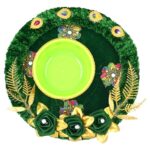 Add a festive touch to your special occasions with this beautifully crafted Decorative Mehndi Thali / Platter. Designed with traditional embellishments such as mirrors, beads, gota work, and vibrant colors, this thali is perfect for Mehndi ceremonies, Haldi functions, Karwa Chauth, Rakhi, Diwali, or wedding rituals. Made from durable base material and adorned with intricate handwork, it brings elegance and tradition together in one stunning piece. Use it to hold mehndi cones, gifts, pooja items, or sweets — a perfect accessory for all your cultural celebrations.