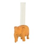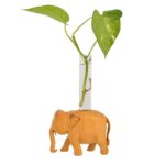 Elephant-Shaped Wooden Stand with Glass Test Tube – Unique Indoor/Outdoor Decorative Vase for Table, Office, and Home Décor
