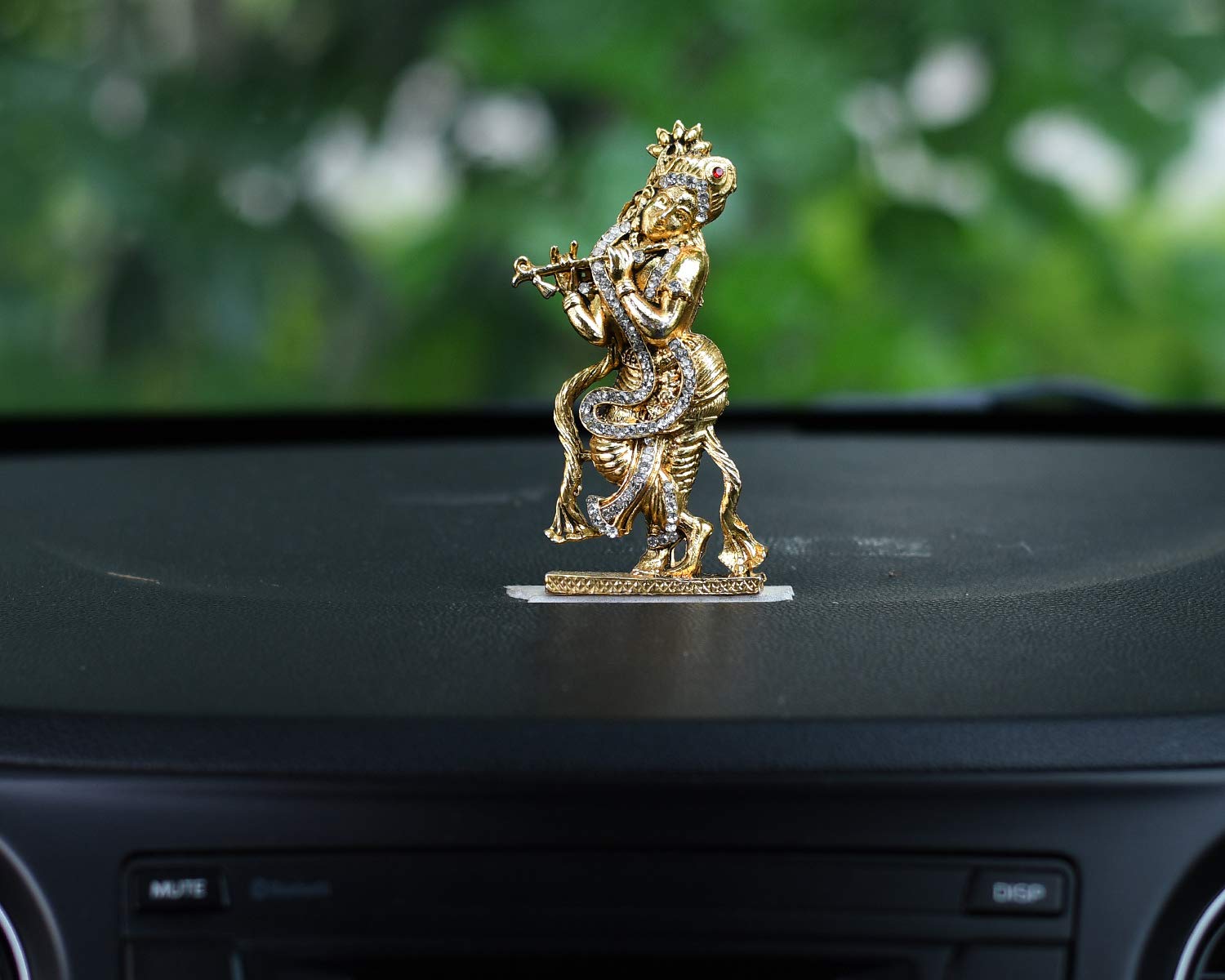 Flute Playing Krishna Idol Showpiece – Metal Krishna Statue for Car Dashboard – Hindu God Religious Idol Krishan Figurine for Janmashtami Home Temple Decoration & Gifts.