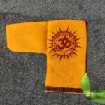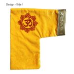 It features a traditional ‘Om’ print that enhances its spiritual aura. The L-shape (Gomukhi design) symbolizes the sacred cow’s mouth, allowing you to keep the mala concealed while chanting. The vibrant yellow color adds positivity and energy to your daily sadhana (practice).