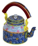 Hand-Painted Traditional Aluminum Decorative Tea Kettle – Colorful Design, 8.5 x 8.25 x 5.5 Inches