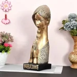 Elegant Design: Handcrafted figurine featuring a graceful lady in a traditional Namaste pose, symbolizing respect and peace.