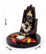 This beautifully handcrafted Palm Ganesha showpiece is a perfect blend of tradition and artistry. Made from high-quality polyresin, the figurine features vibrant multicolor detailing that adds a touch of elegance and spirituality to any space. The Ganesha is carefully sculpted with intricate features, showcasing the divine grace of the Lord. The showpiece sits on a sturdy wooden base, offering a strong and stylish foundation. With a candle holder integrated into the design, it creates a soothing, ambient glow, making it an ideal decorative piece for your home, office, or as a thoughtful gift.