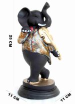Enhance your home decor with this beautifully handcrafted set of 2 Dancing Ganesha figurines. Each showpiece, measuring 28 cm, features Lord Ganesha in vibrant, multicolored attire, elegantly playing traditional musical instruments. Crafted from high-quality polyresin, these intricately designed figurines showcase fine detailing and artistry, making them perfect for adding a spiritual and artistic touch to your living space, office, or prayer room.