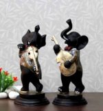 Handcrafted Set of 2 Dancing Ganesha with Musical Instruments – 28 cm Decorative Polyresin Showpieces (Multicolor)