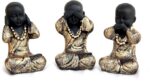Handcrafted Set of 3 Baby Monk Figurines – 12 cm, Polyresin, Gold & Black Decorative Showpieces for Home Décor