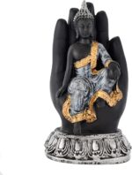 This beautifully handcrafted Sitting Buddha figurine resting on a palm is a stunning addition to any home or office décor. Expertly crafted with intricate details, it captures the serene and peaceful essence of the Buddha, symbolizing calm, balance, and enlightenment. Made from high-quality materials, this decorative showpiece makes a perfect gift for loved ones or a thoughtful accent piece for your own space. Whether placed on a shelf, table, or mantel, it brings a touch of tranquility and elegance to any setting. Ideal for meditation rooms, living rooms, or as a spiritual focal point.