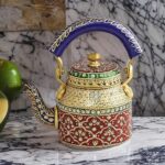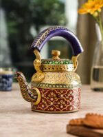 “Handcrafted Design: Intricate handpainted patterns showcasing traditional Rajasthani artistry, making each kettle unique.