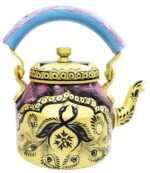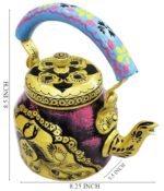 Handpainted Rajasthani Traditional Aluminium Decorative Tea Kettle – Colorful, Unique Design (8.5 x 8.25 x 5.5 Inches)