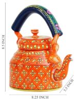 Handpainted Traditional Aluminium Decorative Tea Kettle – Colorful Design, 8.5 x 8.25 x 5.5 Inches