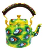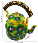 Handpainted Traditional Aluminum Tea Kettle – Colorful Decorative Design (8.5 x 8.25 x 5.5 Inches)