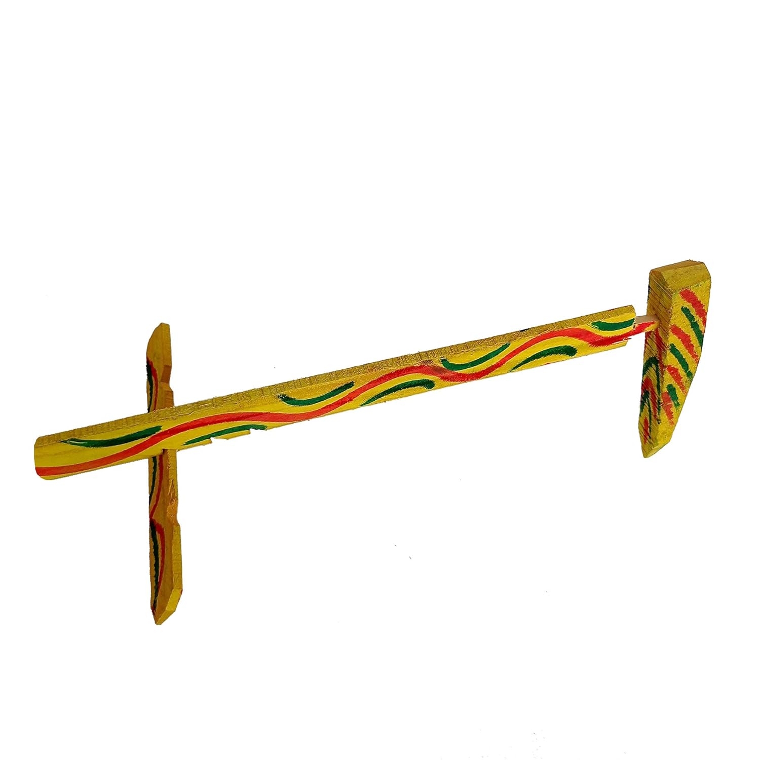 Artisanal Craftsmanship: Typically hand-carved from light wood and painted in vibrant colors like yellow, red, and green. It is often decorated with traditional wavy patterns or floral motifs.