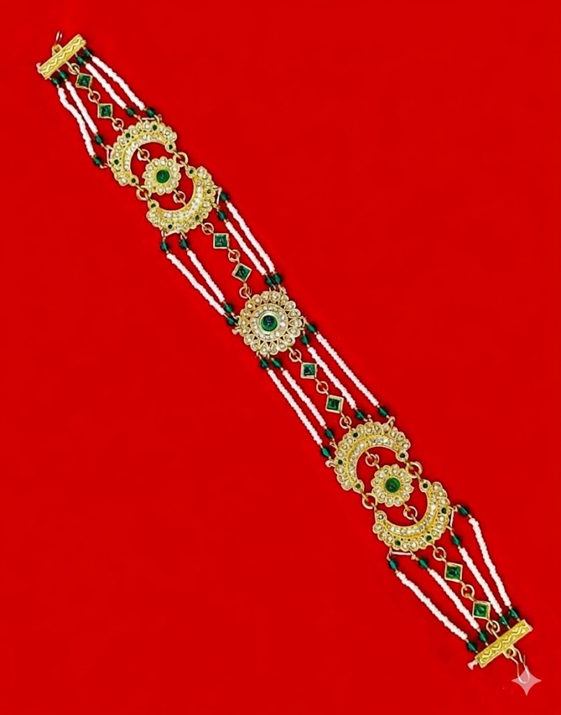 Jewelry Type: A traditional Bajuband (Armlet), a classic ornament that represents the cultural heritage of Rajasthan, specifically worn with Rajputi Poshak.
