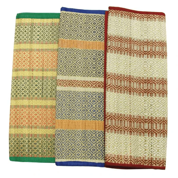 A traditional type of prayer mat is the one made with grass and is called “Kush Aasana”. It is said that “Kush Aasana”allows the yogi to maintain that serene state of mind without being affected by the adversity of the environment surrounding him. Kusha, whose name signifies sharp in the sense of acute,is the root for the Sanskrit word for”expert” kosala. The sanctity of dhurba,also known as kusha grass,is as old as the Indian Gods.All kind of evil forces like, ghosts, spirits, demons, etc. keep away from the place where it is used. This is considered to be the holiest of all the thirthas here, and is believed to be the spot where Gowtama Rishi finally secured Ganga on earth by spreading the Kusha or the Durva grass around her.Kusha grass is considered purifying, and rings woven of it are sometimes worn in worship to keep the hands ritually pure. It is also a remarkable insulator, both physically and metaphysically. Kusha mats can also be used with a blanket on top for sleeping on damp ground in bitterly cold weather.
