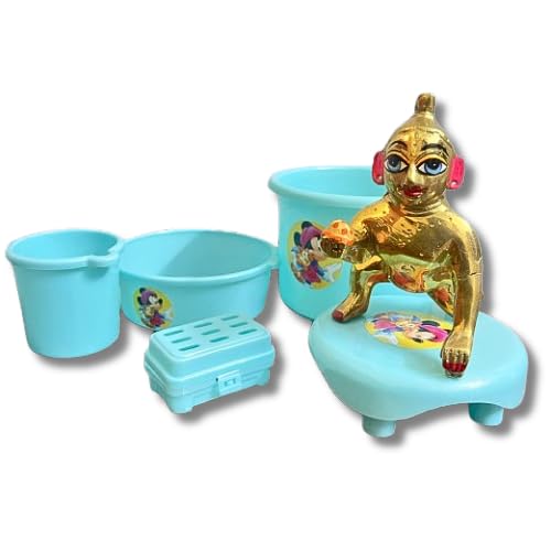 Bring divinity to your daily pooja rituals with this beautifully crafted Laddu Gopal Ji Bath Set, designed specially for Bal Gopal’s sacred bath (Snan). Made from high-quality brass, this traditional set includes a mini bathtub, bucket, mug, and other essential accessories to perform the holy bath with devotion and love. The intricate detailing adds a spiritual charm, making it perfect for Janmashtami celebrations, daily worship, or temple decor. Easy to clean and durable, it’s ideal for all sizes of Laddu Gopal idols. This set also makes a thoughtful gift for Krishna devotees and spiritual occasions.