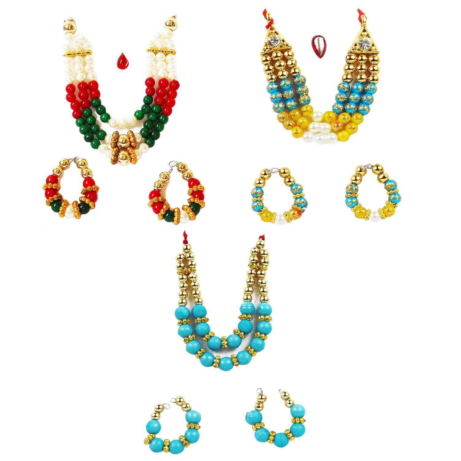 Laddu Gopal Mala Set Multicolor with Kangan | Ladoo Gopal Jewellery Set Size 0,1&2 Krishna Idol/Pearls Mala Jewelry Set (Length 5.5 cms)