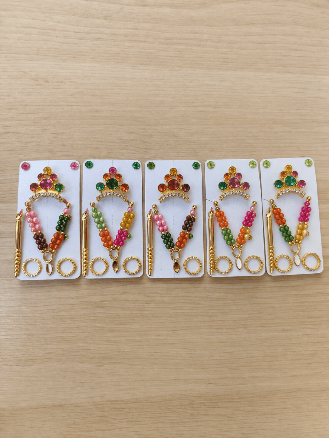 - Set of 6 Multicolour Pagdi / Mukuts – 6 vibrant colours in one pack, perfect to match daily dress / poshak of Laddu Gopal, Kanha Ji, Mata Rani. Available in multiple sizes ranging from 0 no. to 4 no. Premium Mukut Set : Laddu Gopal Poshak/Dress Premium Pagdi/Mukut Shringar (Pack of 6) (Ladoo Gopal Accessories). Ornate Flower & Bead Detailing – Beautiful decorative work with stones, beads and floral motif that adds elegance to the mukut; enhances the idol’s look. Suitable for Festivals & Daily Worship – Perfect accessory for Navratri, Janmashtami, Diwali, Puja, Temples, Gifts etc.; easy to use and maintain.