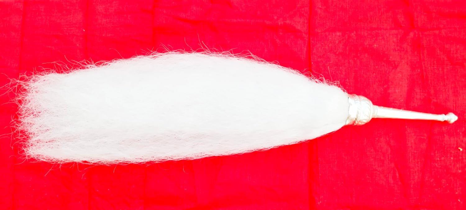 - Traditional Maa Tara Synthetic Chamor Chawar/Chanwara/Chaur/Chavar Metal Body/Sacred Fly Long15.5 inches (pack of 1) with Handle silver Body synthetic 100-120 gram.Handel Size 6.3 inch