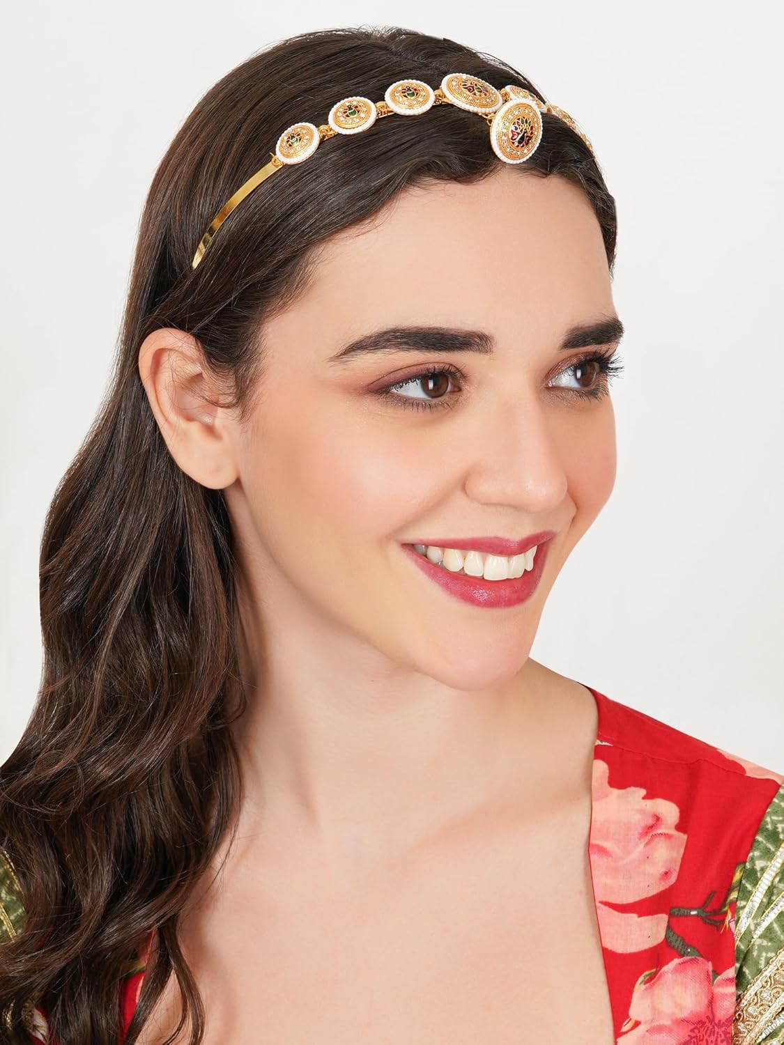 RAJASTHANI Peacock Design Hairband With Attached Mang Tika Gold-Plated Celebrity Wedding Party Headband Hair Accessories