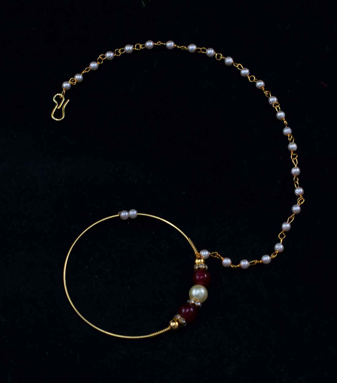 RAJPUTI MOTI NATH WITH MAROON AND WHITE PEARLS