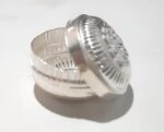 Elevate your traditional rituals with this elegant Silver Plated Sindoor Box, intricately carved with floral patterns and a beautiful circular design. Perfectly designed for storing kumkum, haldi, or chandan, this box adds a touch of sophistication and devotion to your pooja room or vanity. Crafted from high-quality metal and coated with a silver polish, it is durable, lightweight, and ideal for daily or ceremonial use. A perfect gift for weddings, festivals, or religious events.
