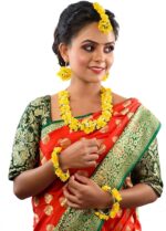 Perfect for occasions like haldi, mehndi, sangeet, Navratri, wedding ceremonies, or even traditional school/college functions, this floral necklace enhances your ethnic attire with a unique handmade touch.
