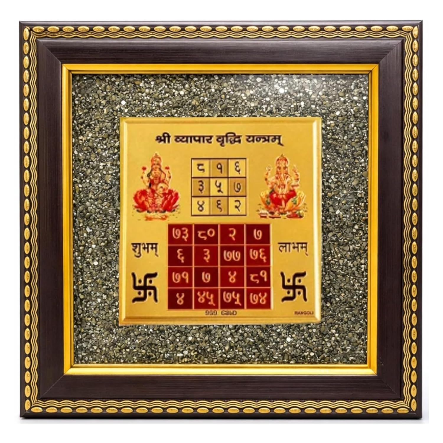 Vyapar Vriddhi Yantra Pyrite Frame for Business Growth, Wealth & Prosperity | Powerful Vastu Yantra for Shop, Office, Cash Counter | Money Attraction & Success Spiritual Wall Decor