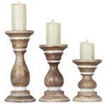 - *SET OF 3 RUSTIC CANDLE HOLDERS – Each set comes packed with three pillar candle holders in different size variations: 6″, 8″, and 10″. This combination is perfect in arranging a stunning tea table, coffee table, end table, center table, kitchen countertop, candle light dinner and wedding decors
