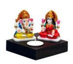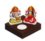 Wooden Tea Light Holder with Lakshmi Ji & Ganesha – 4×4 Inches – Spiritual Home Décor & Diwali Decoration
