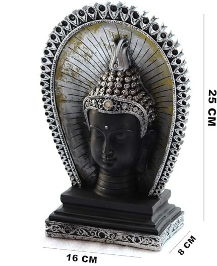 Handcrafted Design: Meticulously crafted with intricate detailing for a unique, artistic appearance. Premium Quality: Made from durable polyresin, ensuring longevity and lasting beauty. Antique-Inspired: Features a vintage look with vibrant multicolor accents, adding a spiritual touch to any space. Perfect Décor Piece: Ideal for living rooms, meditation spaces, or as a thoughtful gift for loved ones. Serene & Calming: The Buddha face symbolizes peace and tranquility, creating a harmonious atmosphere in your home. Size: Stands at 25 cm, the perfect size for display on shelves, tables, or mantels.