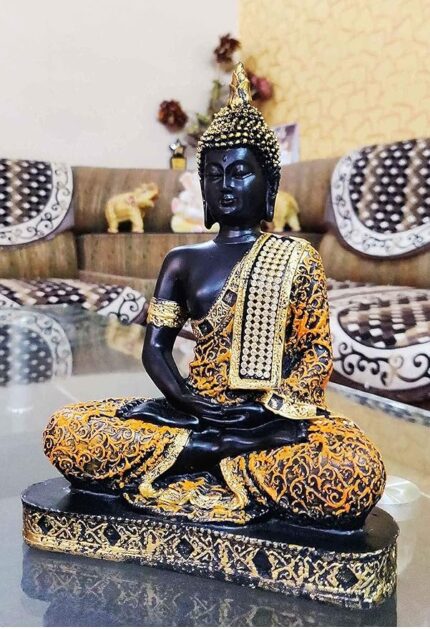 Orange & Gold Sitting Buddha Statue – Elegant Home Décor Showpiece for Living Room & Perfect Gift