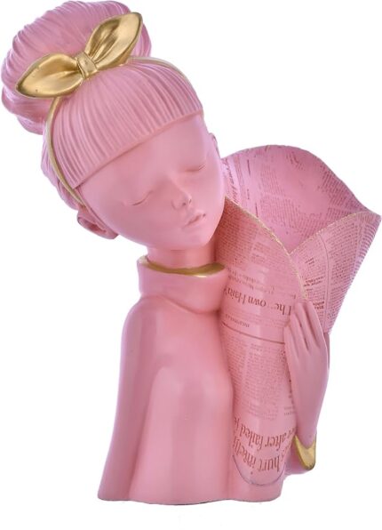 Pink Lady with Basket Decorative Flower Statue – Elegant Home Decor Showpiece Figurine