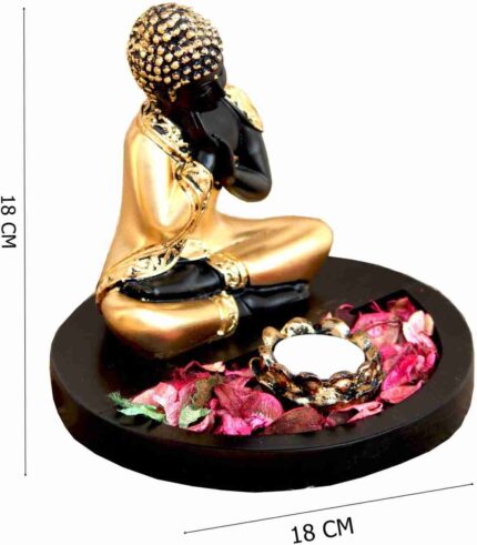 Thai Buddha with Wooden Base and Tealight Holder Showpiece Figurine(7 * 7 * 7 Inches)